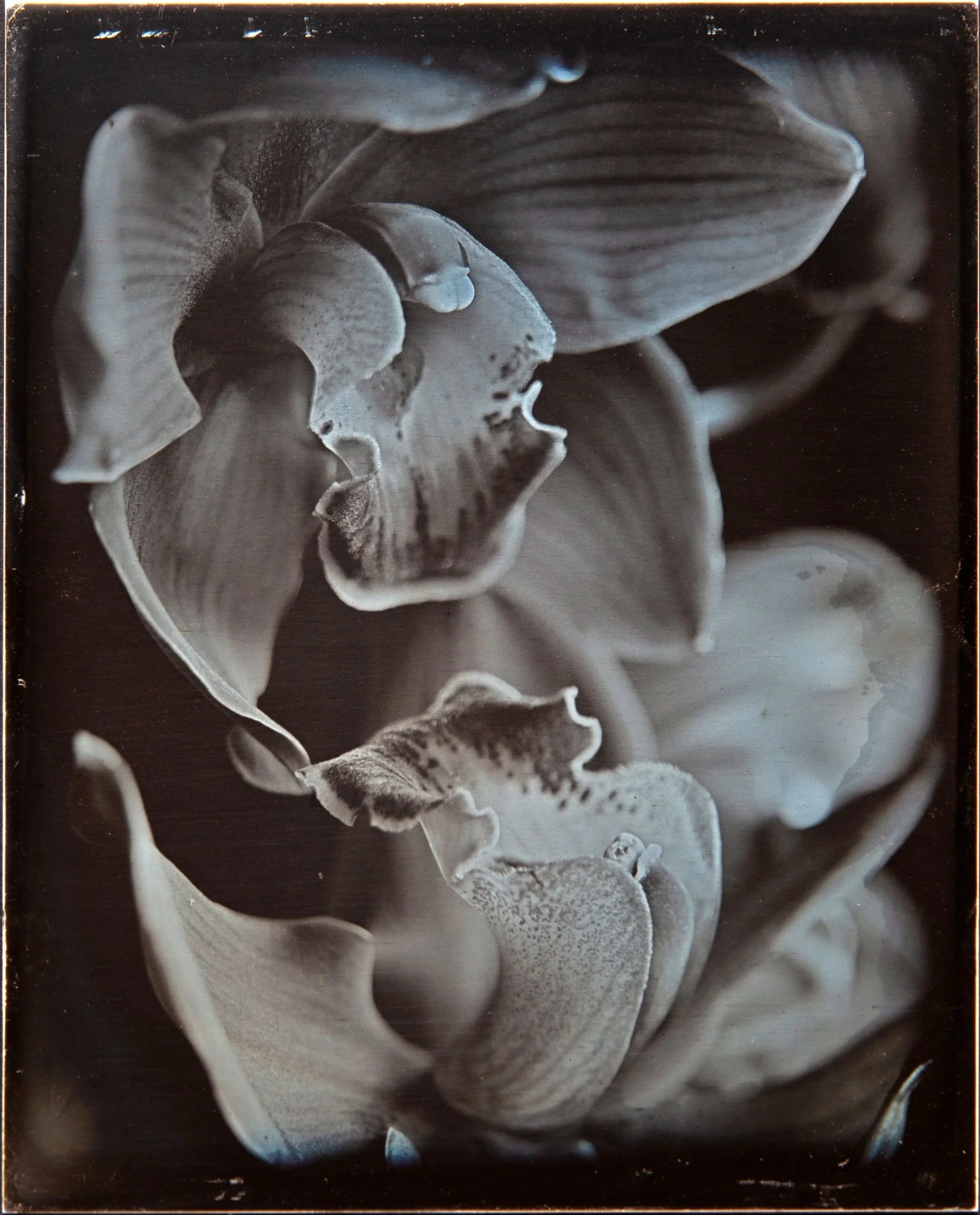 Using black glass, or black coated aluminium a one off positive image is produced. Using clear glass, a negative may be produced. Wet plate glass negatives have incredible resolution and detail given that this is a virtually grainless emulsion, I enjoy using these negatives with a variety of printing methods.